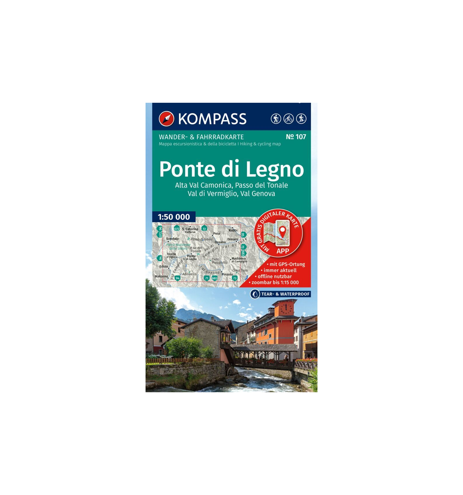 KOMPASS – Wanderkarte Ponte di Legno, Alta Val Camonica, Passo del Tonale, Val di Vermiglio, Val Genova 1:50.000