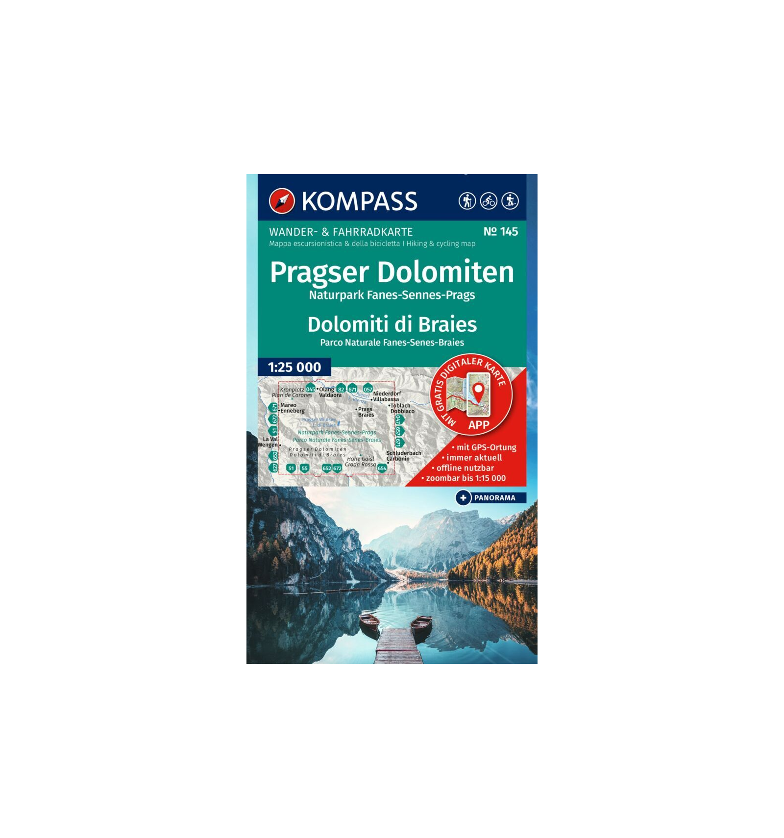 KOMPASS – Wanderkarte Pragser Dolomiten, Naturpark Fanes-Sennes-Prags 1:25.000