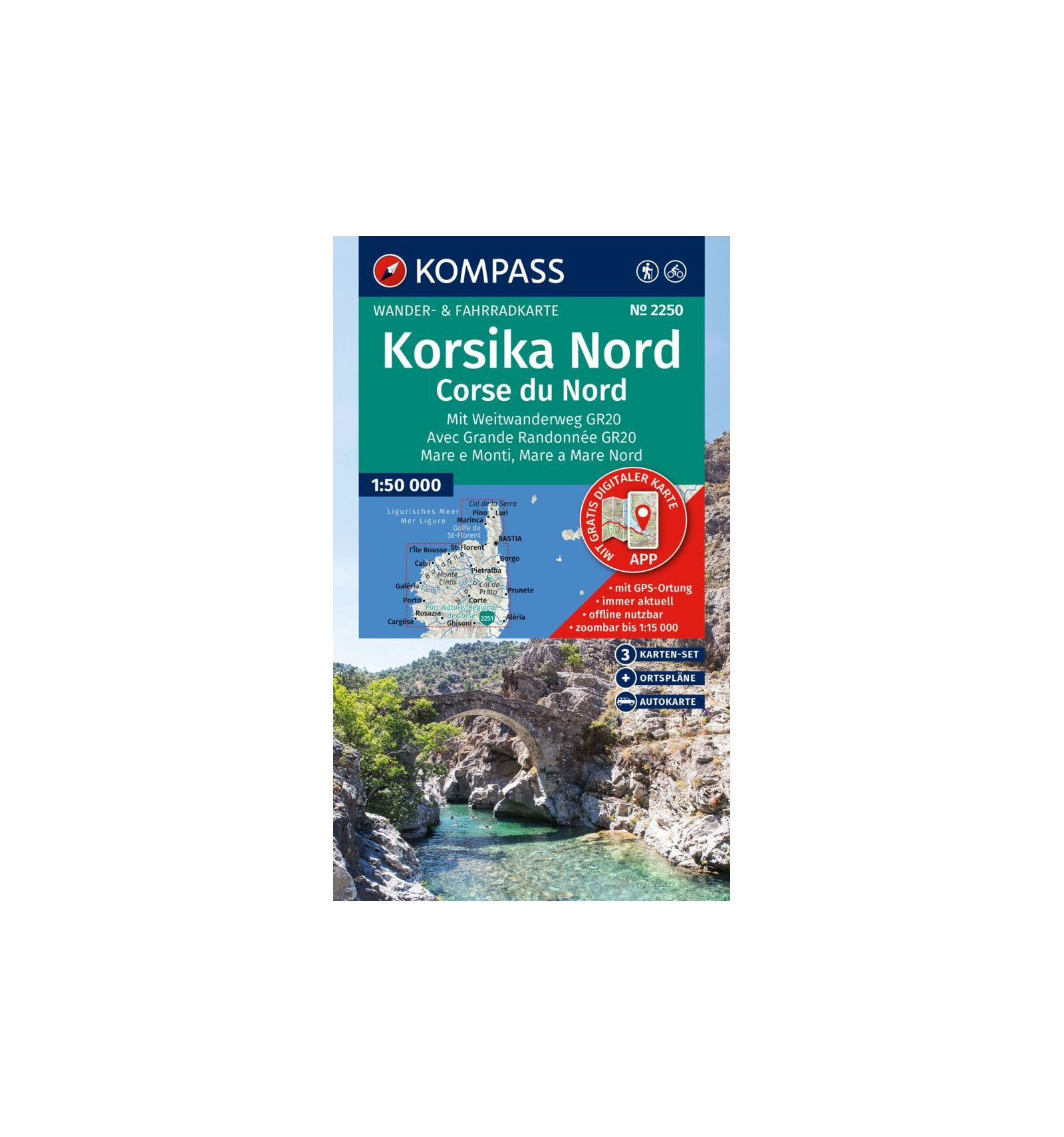 KOMPASS – Wanderkarte Korsika Nord 1:50.000, SET aus 3 Karten