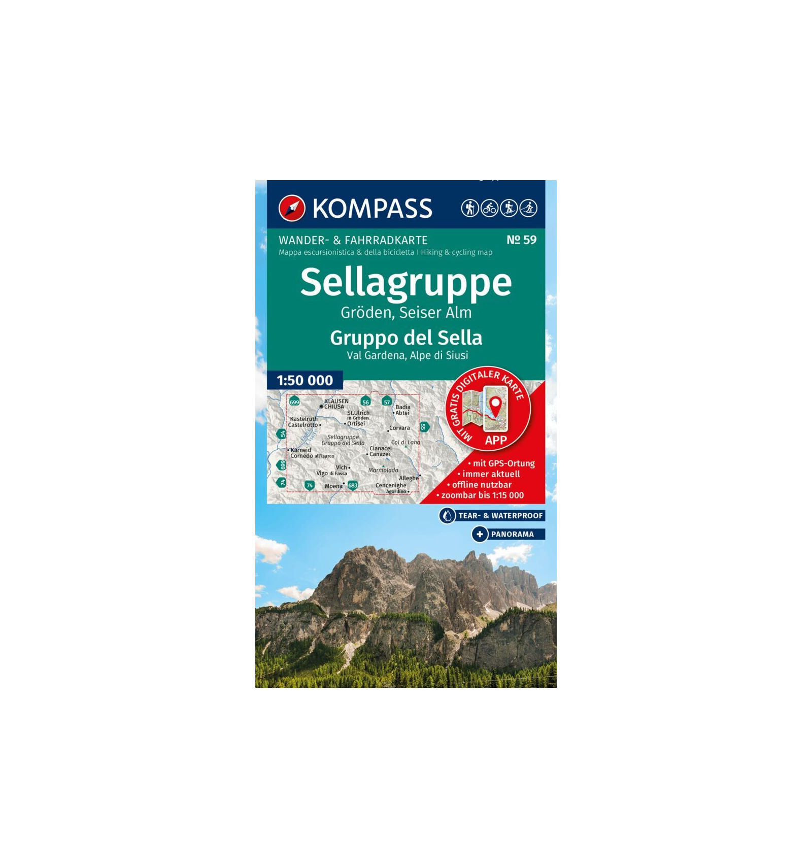 KOMPASS – Wanderkarte Sellagruppe, Gröden, Seiser Alm 1:50.000